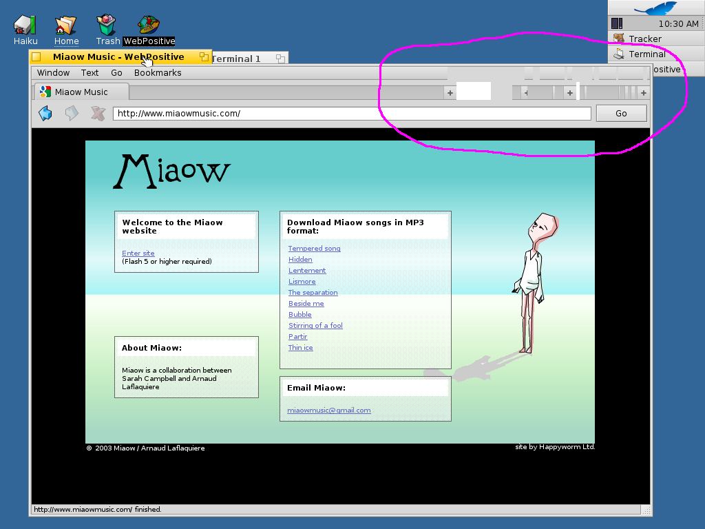 [00:35:44] <DraX> martinhpedersen: you could probably make it possible to tear off tabs in haikutwitter, so that when you drag them outside the window they become a new window