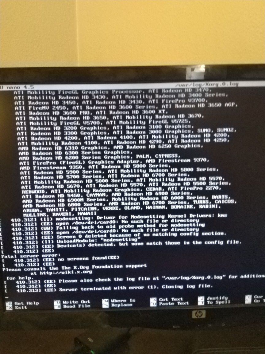 [18:32:36] <ThomasB> I just switched from one AMD gpu to another and when I boot X fails to start with "no screens found." I'm now using the amd RX 5700 Xt gpu.