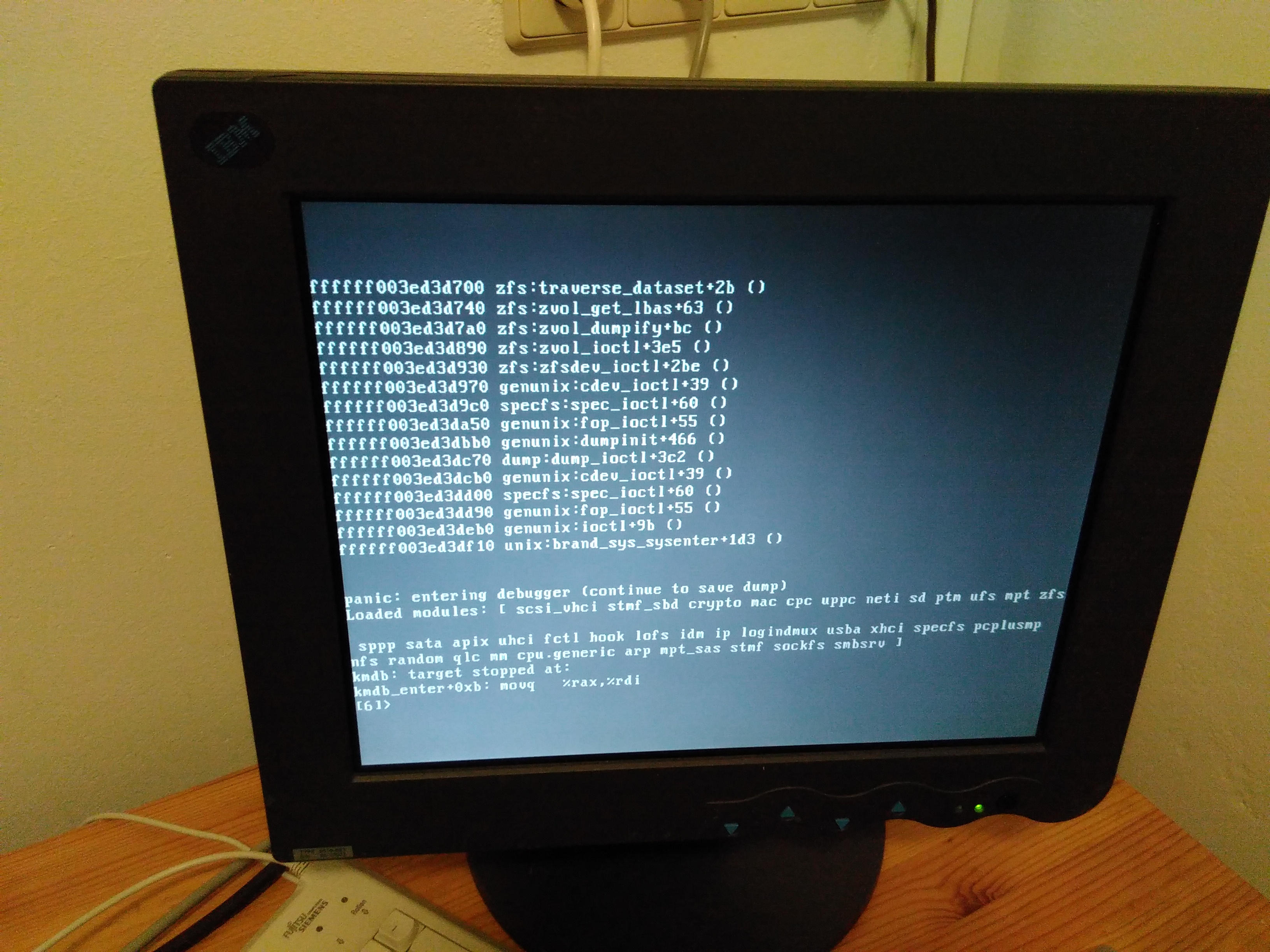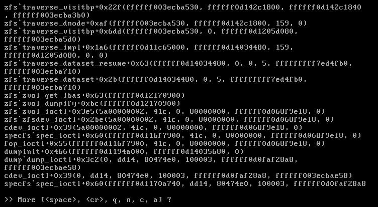 [00:23:29] <nbjoerg> backtrace shows zfs things, but reboots too fast to actually look at it
